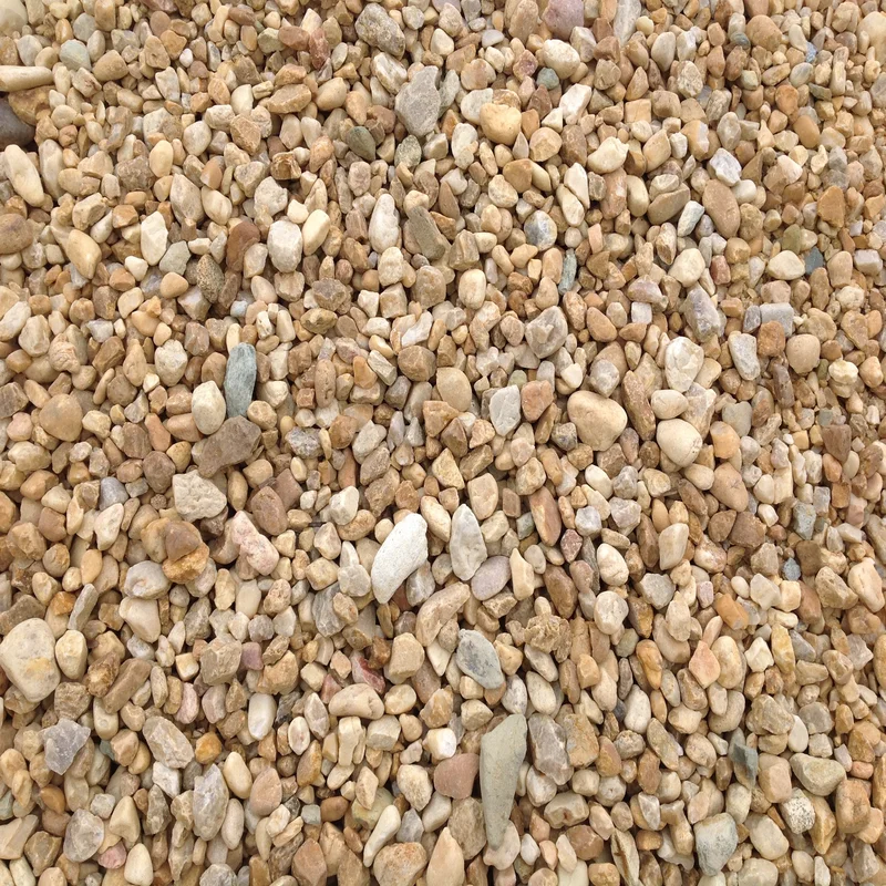 River rock is available from sizes of about a marble up to about a softball. Its a smoother rounded rock with colors of white, tan, brown etc. It's a decorative gravel for top dressing ABC, sidewalks, patios etc or if the larger sizes are desired it makes for nice "mulch" and landscaping features.